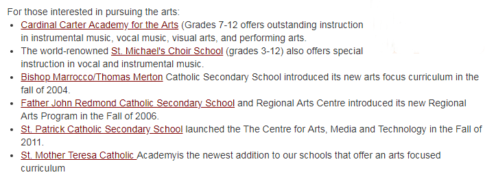 对于喜欢艺术的孩子,多伦多公立教育局有以下学校: