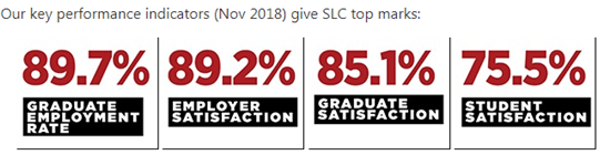 雇主对于圣劳伦斯学院毕业生受教育程度和工作能力,满意度为100%;86.5%的毕业生,在毕业后的6个月内找到了正式工作;80%的学生对于学校的教育质量、学生服务、课程多样性、以及教学资源表示非常满意。