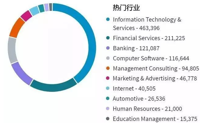 麦肯锡报告显示:目前美国急需15~19万具有分析专长的人才,以及150万能够基于大数据做决策的管理人才。根据领英的数据:商业分析的平均年薪是7.2万美元,最高年薪可达10.4万美元。热门的企业包括顶尖咨询公司、IT以及商业企业,热门的行业包括信息产业、金融服务、银行投行、软件、管理咨询和市场营销等。