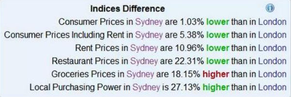 以英澳两个最具代表性的城市作比较,伦敦的生活成本全面碾压悉尼。
