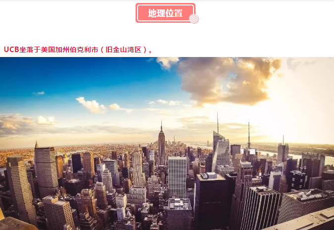 加州大学伯克利分校位于美国加利福尼亚州伯克利市,地处旧金山湾区东北部,与旧金山、金门大桥等隔湾相对,依山傍海,景色壮丽。旧金山湾区属地中海气候,雨季在春冬时节,冬暖夏凉、气候宜人。学校周围特色咖啡馆,具有时代感的艺术馆、音像店。