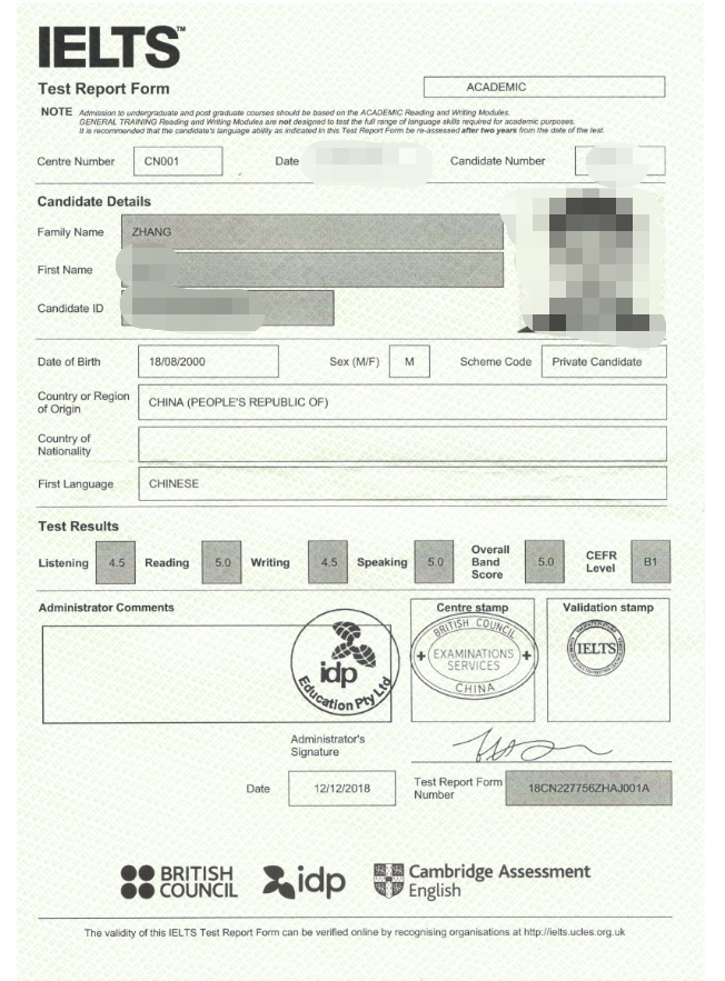 雅思:5.0(L4.5,R5.0,W4.5,S5.0)
