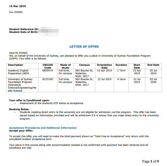 申请情况分析:学生从高一开始,就想要申请美国的本科,但是处于种种原因,学生等到高中毕业,都没有拿到心仪院校的录取通知书,家长和学生万般无奈之下,放弃了美国留学。所以家长和学生迅速的找到了高老师来办理澳洲的留学申请,高老师对学生的情况进行了全方位的评估之后,给出了留学设计方案,并且通过和学生家长的精诚合作,顺利拿到了悉尼大学和新南威尔士大学的录取通知书。学生于2018年12月考了雅思,虽然只拿到了雅思5.0(4.5)的成绩。这个时候高老师和学生以及学生家长进行了会谈,最终决定给孩子配10周语言课,让孩子尽快入学,因为孩子在国内没有学校可读,这样的状态持续了半年,学生觉得十分的心慌。语言课的offer很快就搭配好了,学生利用这两三个月的时间考取了驾照。目前学生的后期事宜已经安排妥当,手机卡,银行卡,离境需要携带的材料,接机,住宿等高老师都给做了详尽的安排。目前张同学已经做好了出国准备,预祝他一切顺利。