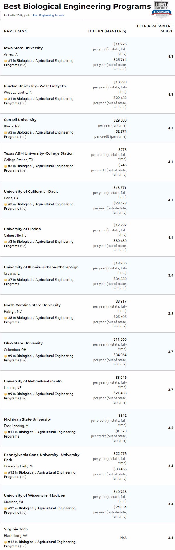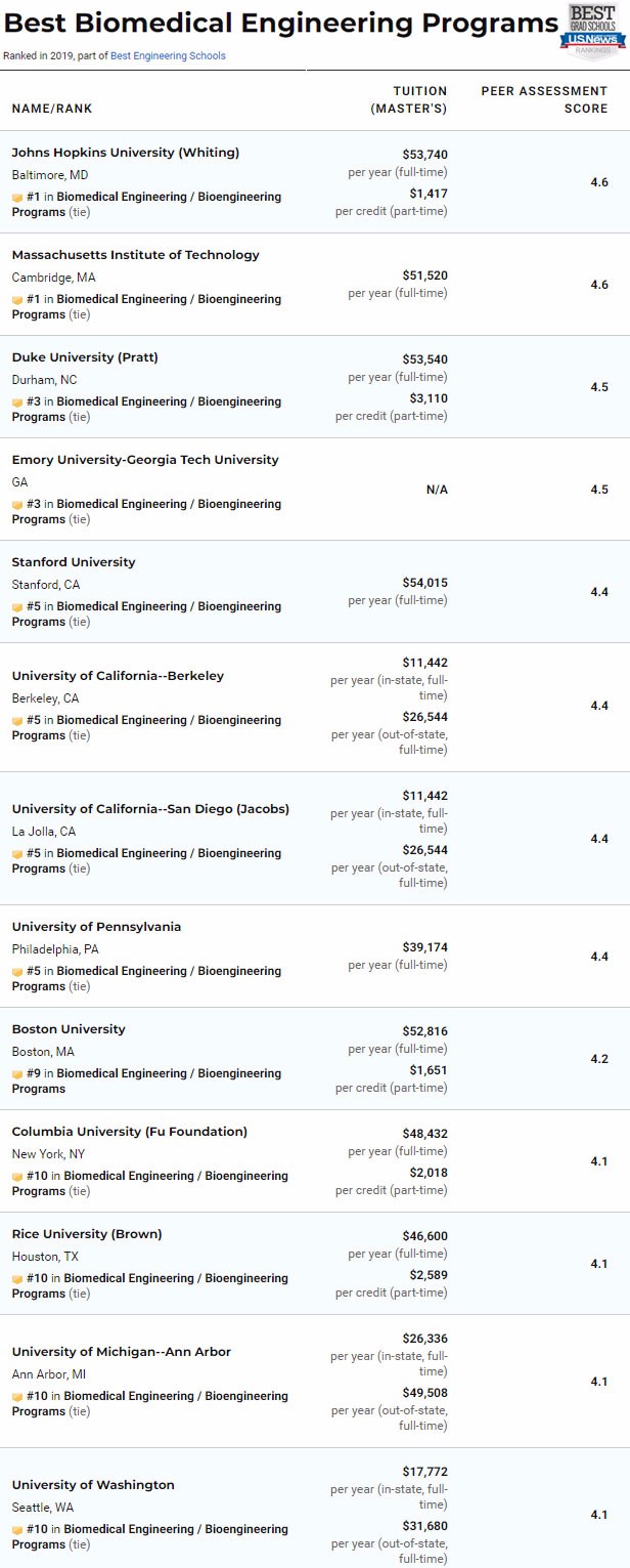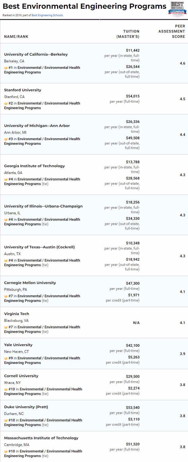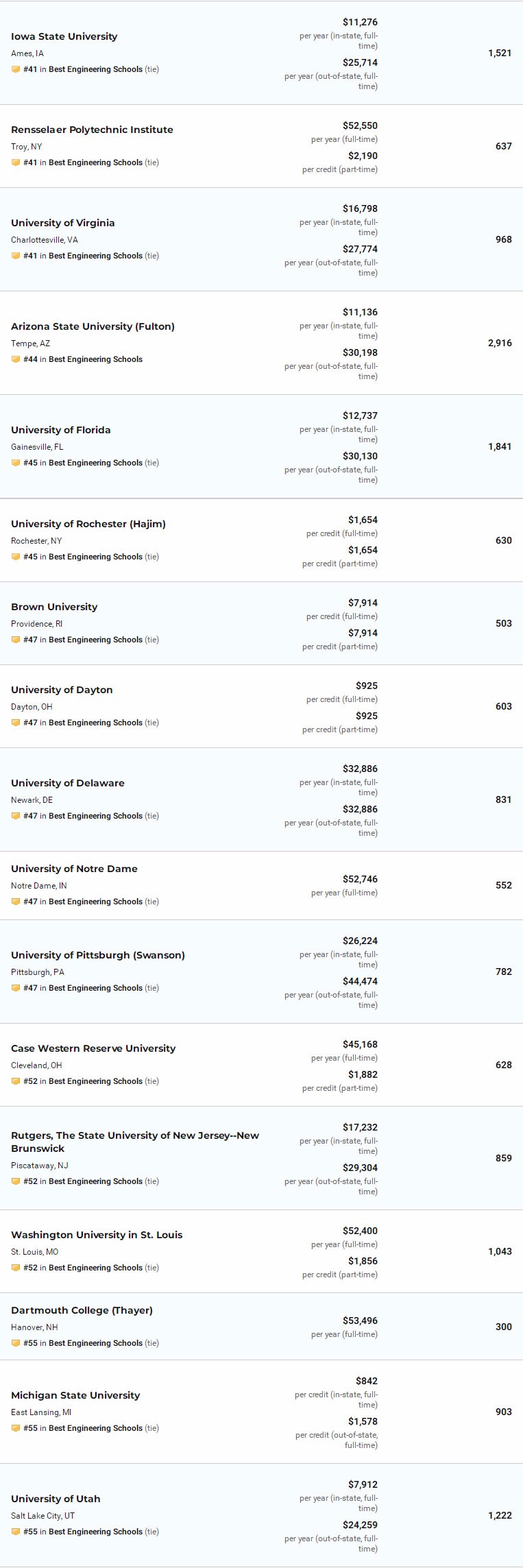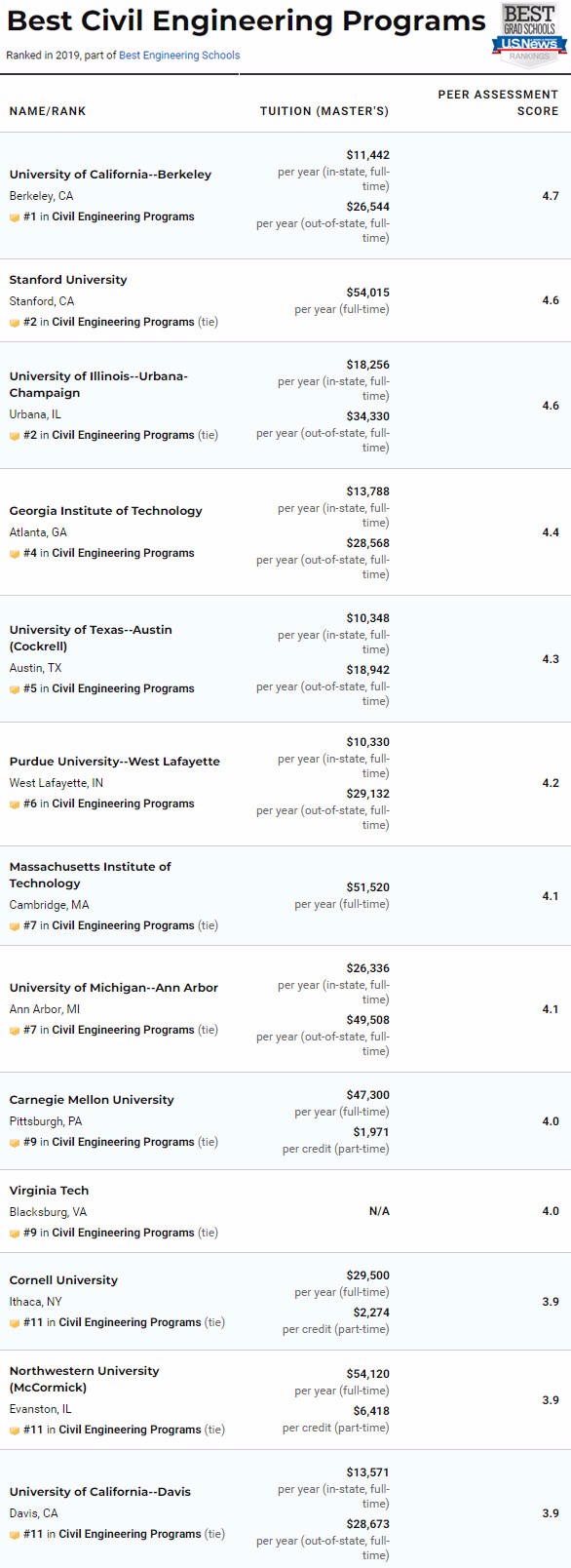 除了总的工程学院排名,今年USNews依然对计算机工程、电子/电气/通信工程、航天航空工程、生物工程、生物医学工程、化学工程、土木工程、环境工程、工业工程、核工程、石油工程、机械工程、材料工程进行了具体排名。