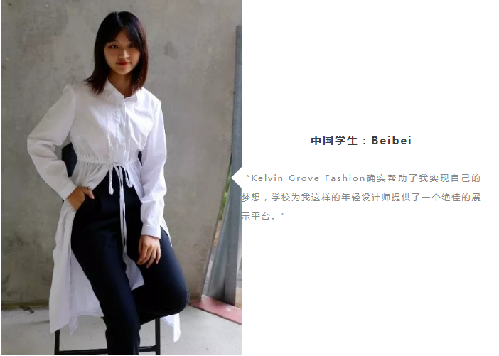 其中,在白色衬衫设计项目中,我们还可以见到两位中国学生的身影,来自Kelvin Grove州立学校的在读生: Beibei与Fee 。