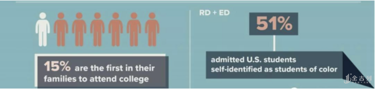 又比如,有很大一部分比例是 第一代大学生录取 ,相当于美国的贫困阶层(今年宾夕法尼亚大学将15%的名额留给了第一代大学生);