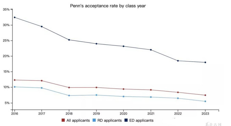 根据学校新闻,今年宾夕法尼亚大学收到44,960申请,录取3,345人, 2023届录取率为7.44%。