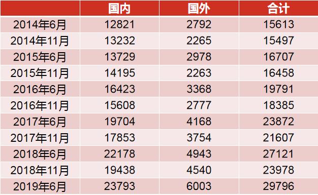 日本现有国立大学82所,公立大学87所,私立大学588所,学校数量和招生人数是比较稳定的,但是赴日留学人数却是急剧攀升。众所周知,日本大学的文凭含金量高,国内近几年高考和考研的形式又比较严峻,所以很多人开始选择出国留学。以下是从2014年6月-2019年6月报考日本留学生考试的数据,2014年到2019年留考人数翻了一倍,竞争压力可想而知。