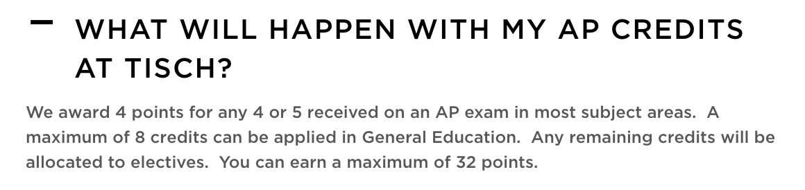 大多数学科的AP考试获得4分,或总分5分中获得4分即可转入。 主科课最多可以申请转8个学分。 任何剩余的学分都将分配给选修课。 学生最多可以转32个学分。