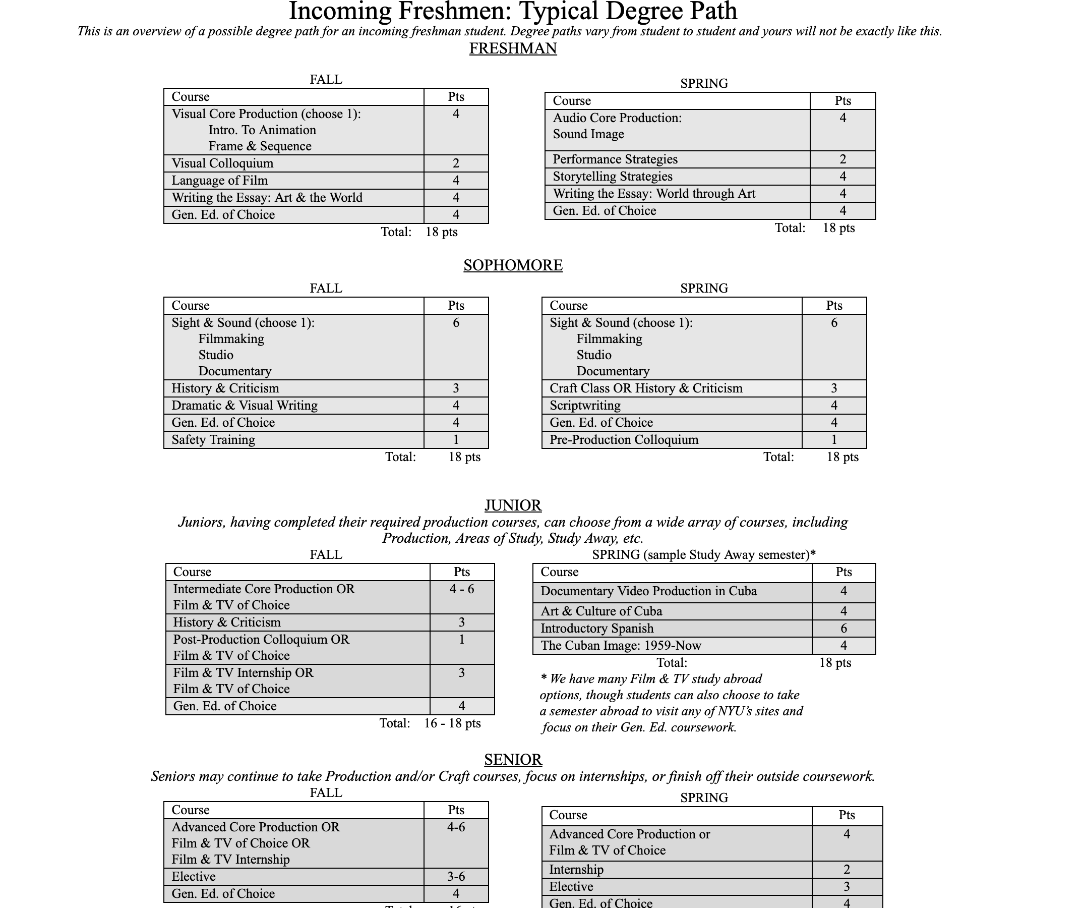 以下为新生入学后四年学习的课程示例