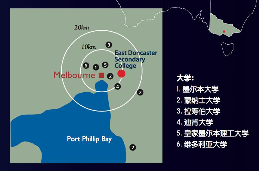 学校共有约1500位学生,包括来自40多个国家的约100位国际学生,同时还有160多名教职员工。学校距离墨尔本市中心16公里,从附近的东部高速公路(Eastern Freeway)驱车20分钟,便可轻松抵达市区。公共交通非常方便,校外有巴士停靠站。