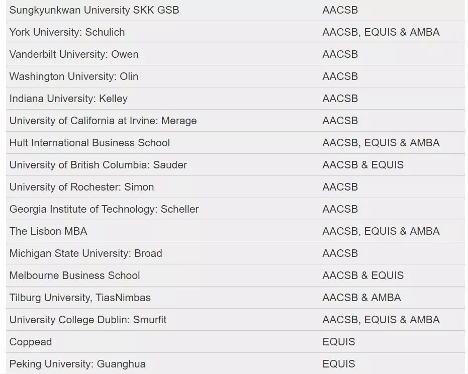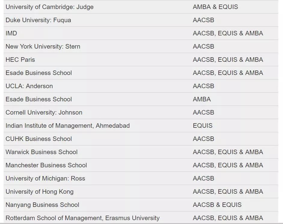 据悉,在全球范围内仅有不超过1%的商学院同时取得了这三大国际认证,截至2019年3月,全球有90所商学院获得了最受欢迎的国际认证机构AACSB、AMBA和EQUIS颁发的“三重冠”认证。