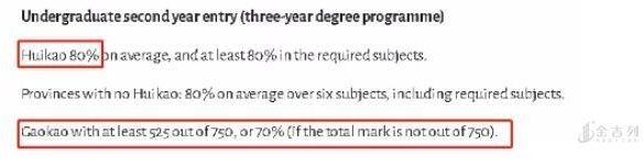 - 对A-Level单科有要求的专业,该单科高考成绩也要达到最低75%;