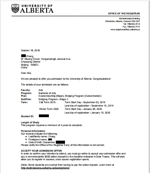 录取结果:加拿大医博类排名第5 - 阿尔伯塔大学 University of Alberta