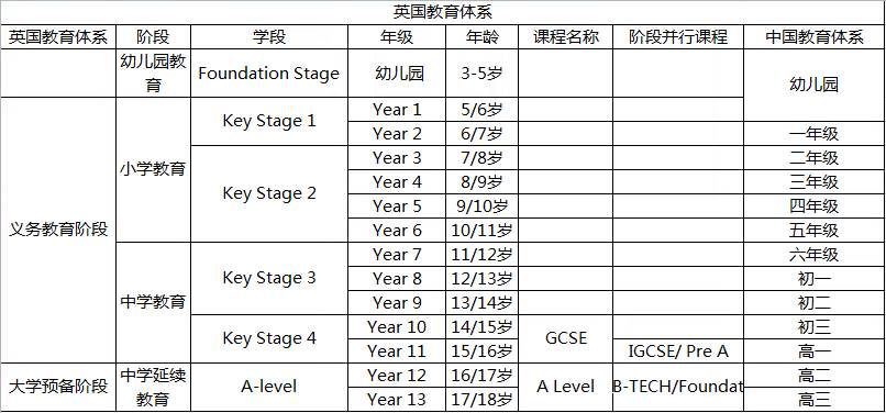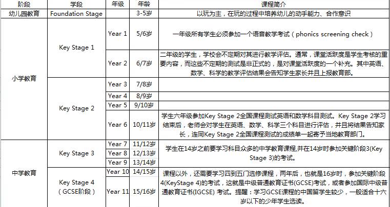 每个阶段英国的小朋友都学些什么呢?看下面的表格就知道了!