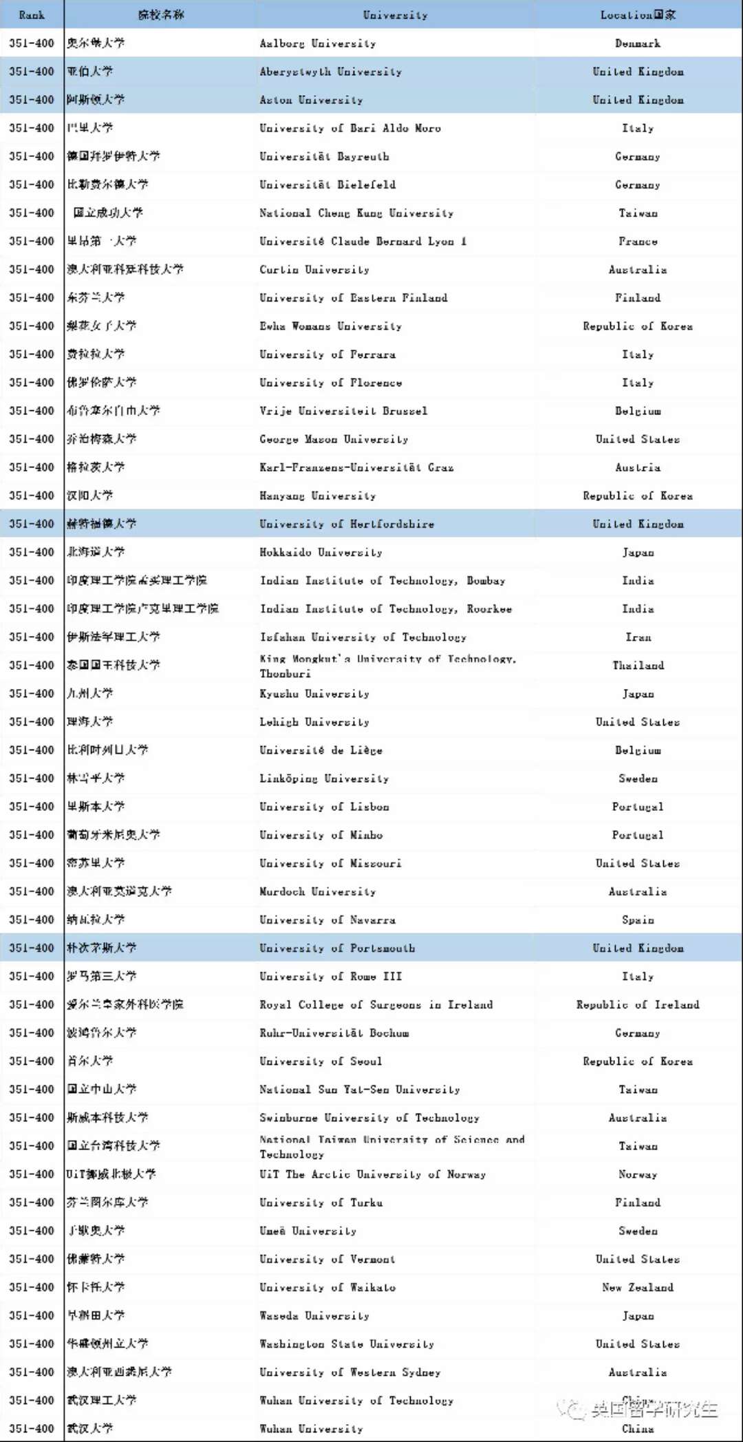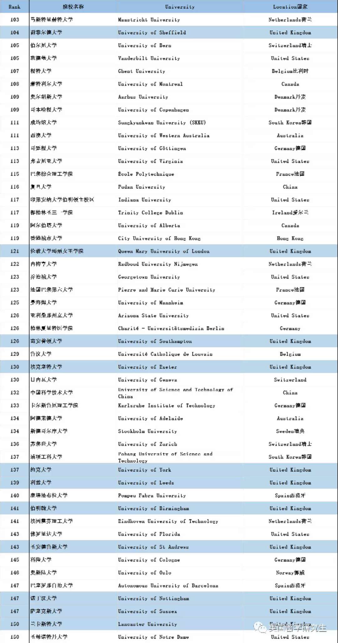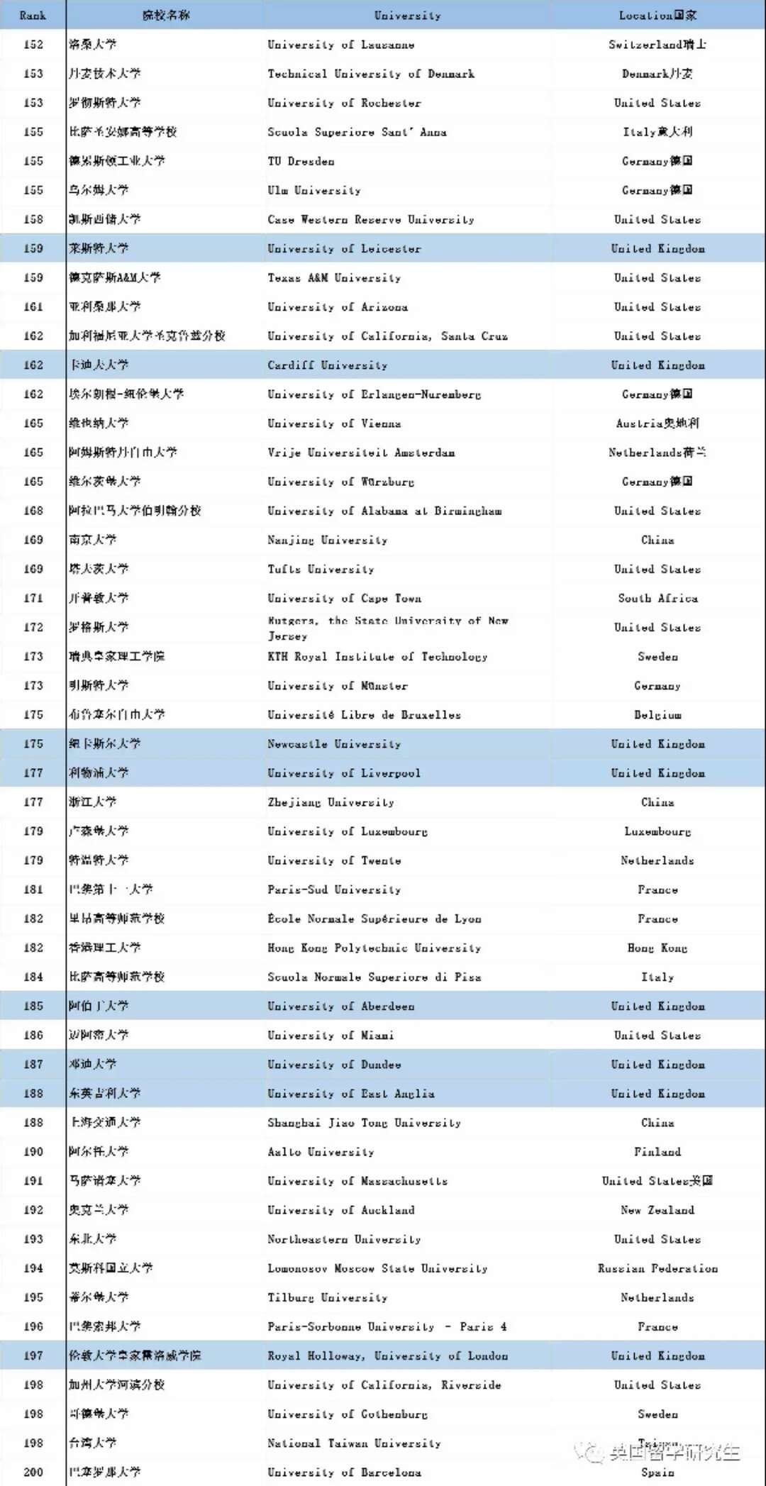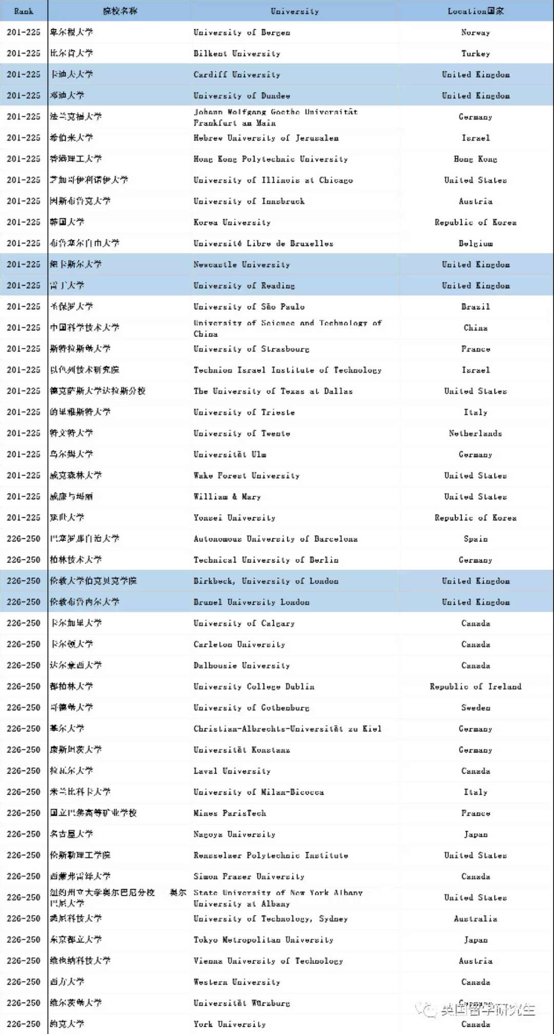 自 2004年11月以来,《泰晤士高等教育》与国际高等教育研究机构——QS合作,在每年的秋季公布世界大学排名。《泰晤士高等教育》自2010年改为与加拿大汤森路透集团(Thomson Reuters,即路透社)合作,并在以往排名标准的基础上继续完善,推出了THE(Times Higher Eucation)Worl University Rankings《泰晤士高等教育》全球大学排名。排名主要依据经济活动与创新(如获得产业界研究经费指数),国际化程度(如国际学生与当地学生比例),制度化指标(如学校师资),研究指标。新标准主要包括教学能力(Teaching,占30%)、研究能力(Research,占30%)、论文引用(Citation,占32.5%)、商业融资(Inustry Income,占2.5%)和国际化程度(International mix,占5%)5个大项和13个细分标准。新标准将重点放在大学的研究、教学品质及知识转移。