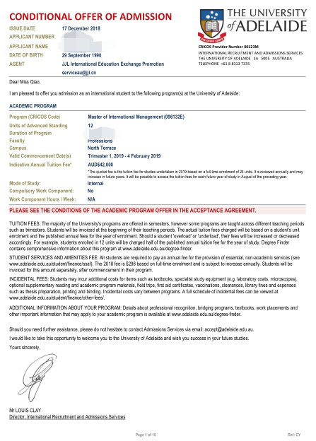 各位家长在选择读研究生时一定要目光更加长远,建议考虑到将来就业,一定提前了解。另外,阿德莱德大学审理期较长,申请量巨大,很多专业还需要提交详细的课程描述和翻译进行审理,所以建议提前尽早规划办理。最好找大学直接合作的一级代理机构进行申请,更加了解学校的录取要求,精准指导申请。参与独家面试活动,获得优先录取权。此外,还要选择愿意为学生争取和冲刺的中介和老师,张娟老师一直为所有学生积极争取,拿到多次特批录取。希望同学们可以用同等的成绩背景,去读能力范围内最好的学校。