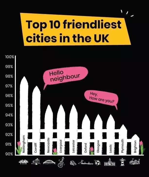 高达98%的诺丁汉群众认为自己的社区关系良好,人与人之间相处融洽。