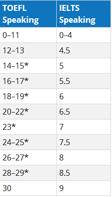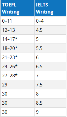 下面带大家看一下 ETS 给出的说明和四个单项的分数对照表格: