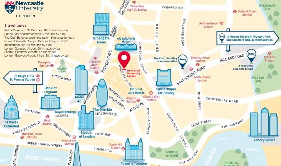 纽卡斯尔大学的伦敦校区在伦敦市中心繁忙的利物浦街车站附近。这里和纽卡斯尔主校区一样,也汇集了活力四射的,来自世界各地的学生,校友和企业。