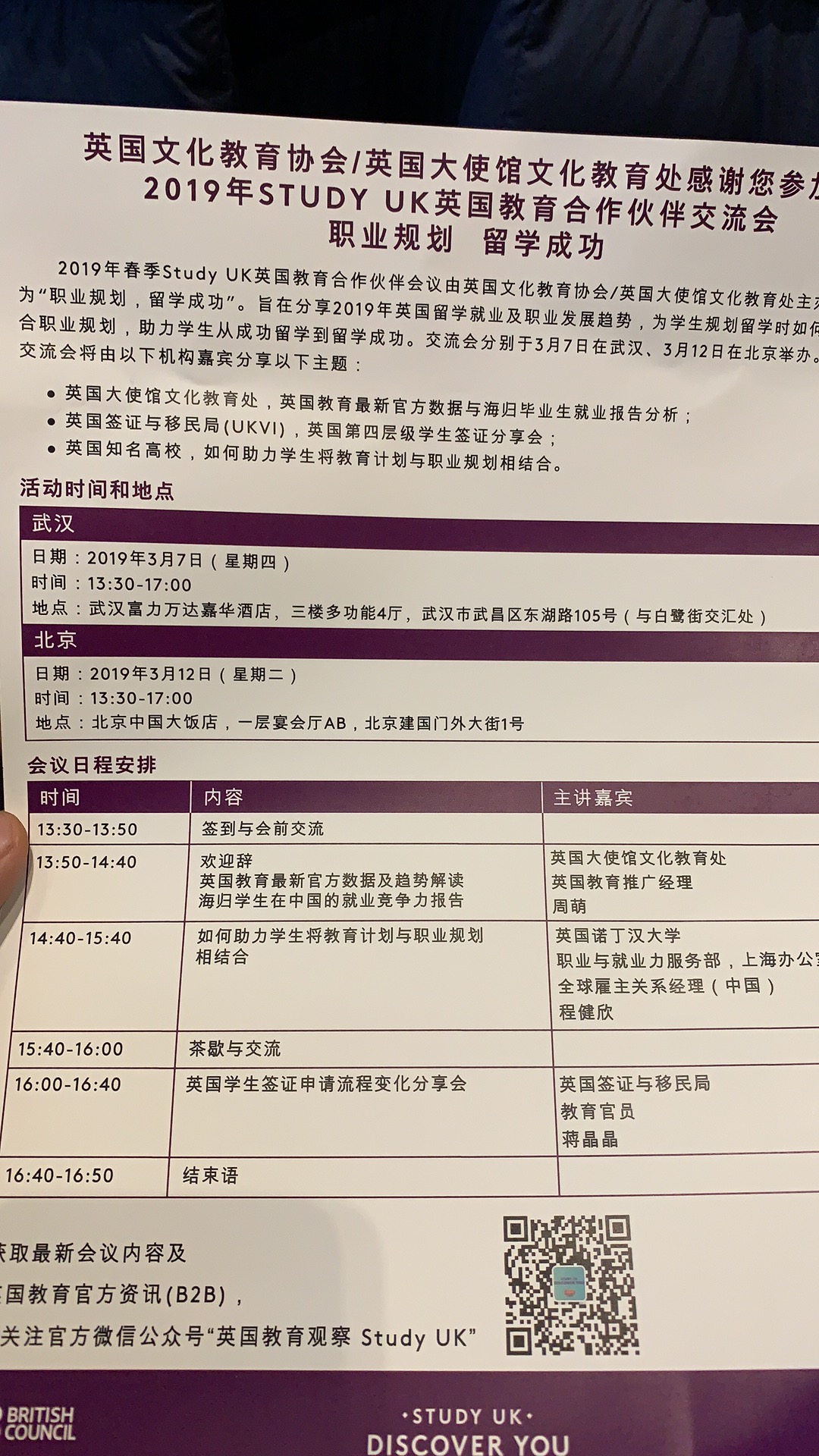 上月,国文化教育协会/英国大使馆文化教育处在其主办的“2019年春季Stuy UK英国教育合作伙伴交流会”分享了第四层级签证的最新流程及要求。金吉列作为活动留学唯一受邀机构,彭老师也有幸参与此次活动;