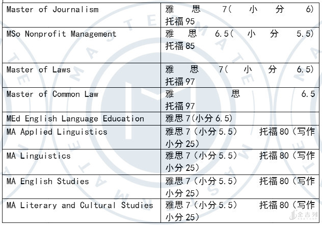 2014年以前,香港中文大学还是接受大学英语六级成绩的,而且只要430分就可以申请,是不是很友好?随后香港中文大学就不再接受六级成绩。 2019Fall香港中文大学并未提高语言要求,但是实际录取过程中,竞争比较激烈的专业,比如传媒,商科等还是会倾向录取语言成绩高的学生。 香港中文大学研究生院提出的基本录取要求是雅思6.5或者托福79,其托福要求是“港中科”中最低的。 部分专业的录取要求会更高一些,例如 :