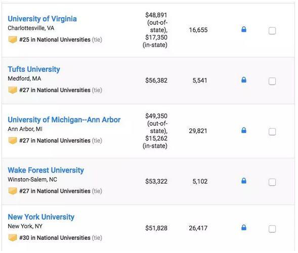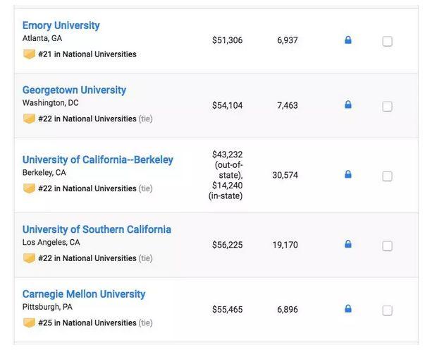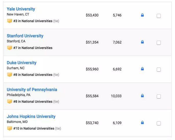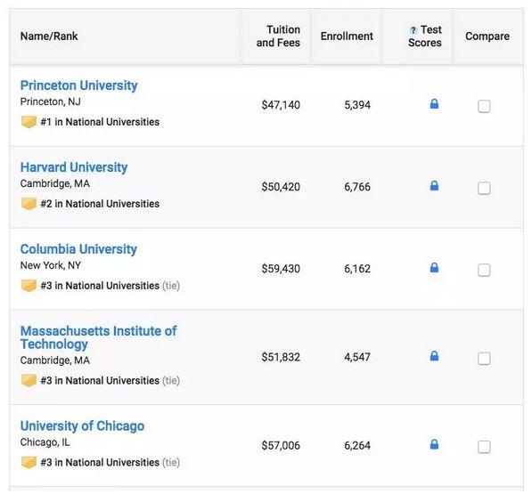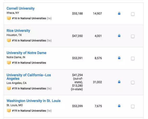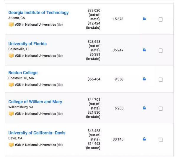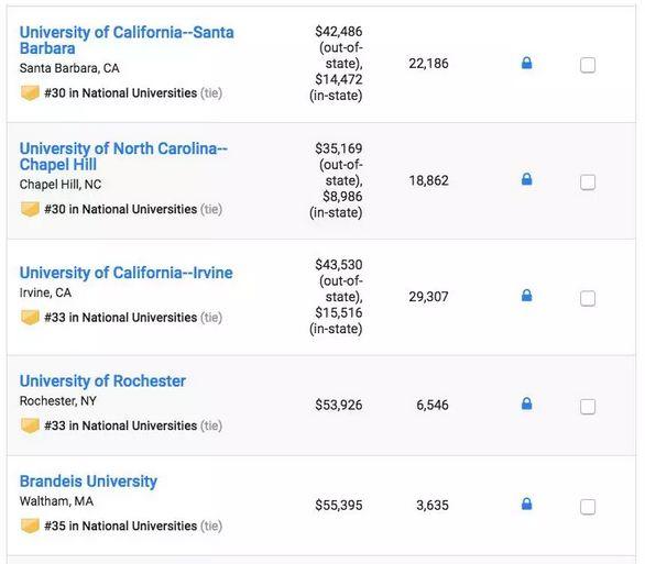 普林斯顿依旧强大,稳稳的排名第一没得说,哈佛紧随其后,MIT冲刺到了第三名。变化最大的当属UC系列,UCLA超越了UCB,UCSB挤进了前30,UCI现在既有颜值又有学霸了!已经离家了常年徘徊在50名的魔咒,冲刺到了第33名!