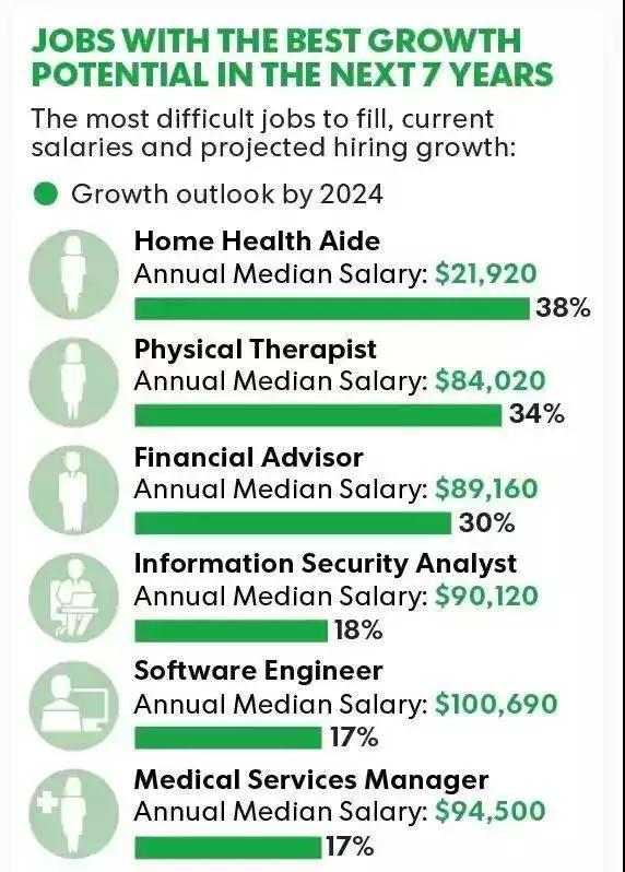 同样,根据CareerCast.com的一项最新研究表示: 数据科学家和软件工程师等计算机领域的工作在未来七年中增长潜力很大。