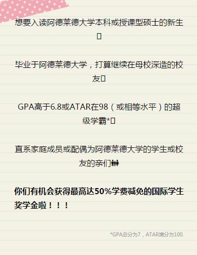 意向阿德莱德大学的学生们 , 快抓住此机会申请吧 , 具体细则请点击与我咨询 ~