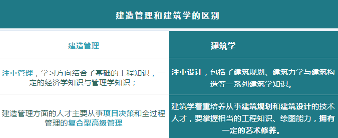 总的来说,建造管理人员是建筑项目中不可或缺的一部分。很多人或许会疑惑建造管理与建筑学的区别,其实他们的主要不同之处如下: