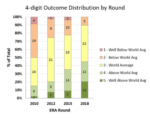 关于 ERA 2018 年澳大利亚卓越研究报告 (ERA) 由澳大利亚研究理事会 (ARC) 领导,经由国际认可的专家通过使用指标与评审相结合的方式对澳大利亚高等教育机构的研究成果进行的评估结果。 ERA报告提供一个广泛的概览被称为 2 位数编码分析和一个更为全面的 4 位数编码评估。通过对 4 位数编码的关注,弗林德斯大学可以详细了解具体领域的结果。基于 4 位数编码结果, 弗林德斯大学约 90% 的科研达到或高于世界水平 。
