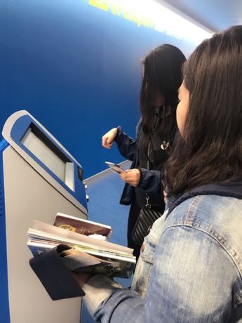 插入从第一步操作中获取的小票。抬头直视前方摄像头,此时将拍摄头像并将其与电子护照上的照片进行比对。