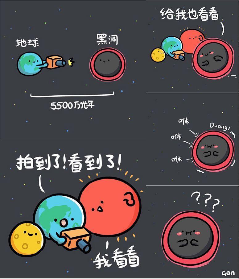 说白了黑洞就是一个可以把周围任何事物都吸进去的“无底洞”?拍照的人真的是厉害了,据说这个黑洞距离地球有24亿亿公里,这么具有历史意义的时刻,总之还是向这些伟大的研究者致敬。