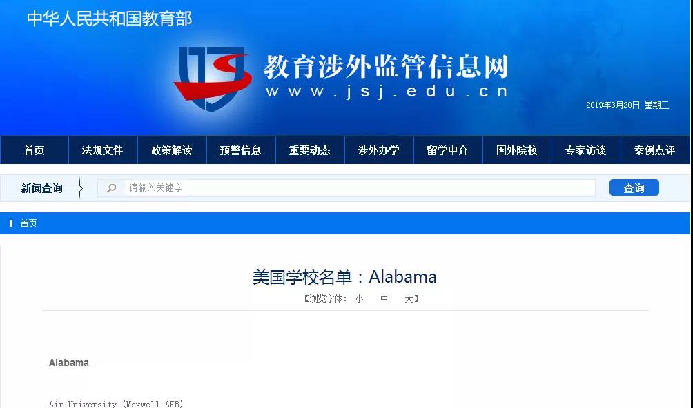 教育部官网上有一个专门的链接,详细到美国的每个州,里面列出了受到承认的大学。 这个标准是如何制定的我们无法得知,里面也会涉及到美方的专业机构,但至少在官网上列出的这些学校是安全的,而不在上面的,那就姑且认为它们是野鸡大学吧,建议出国留学的同学都可以来查一查,每一个国家的都有。