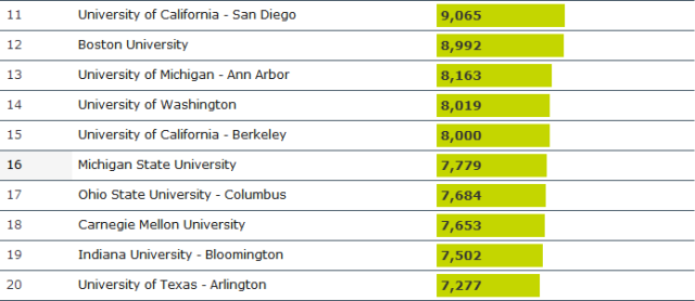 NYU、USC则是连续四年包揽最爱留学生大学前两名。想想他俩豪华高逼格的校园设施、还有那高到让人心疼的学费,就能明白。