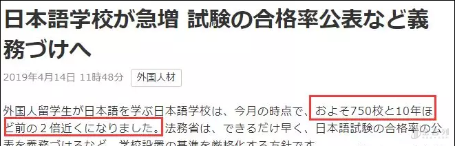而根据NHK最近的一篇报道来看,目前日本的语言学校大概有750所,是10年前的近2倍。