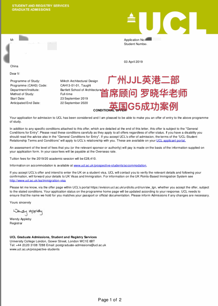 恭喜L同学,经过曲折的审理过程,最后获得UCL Bartlett建筑学院offer!