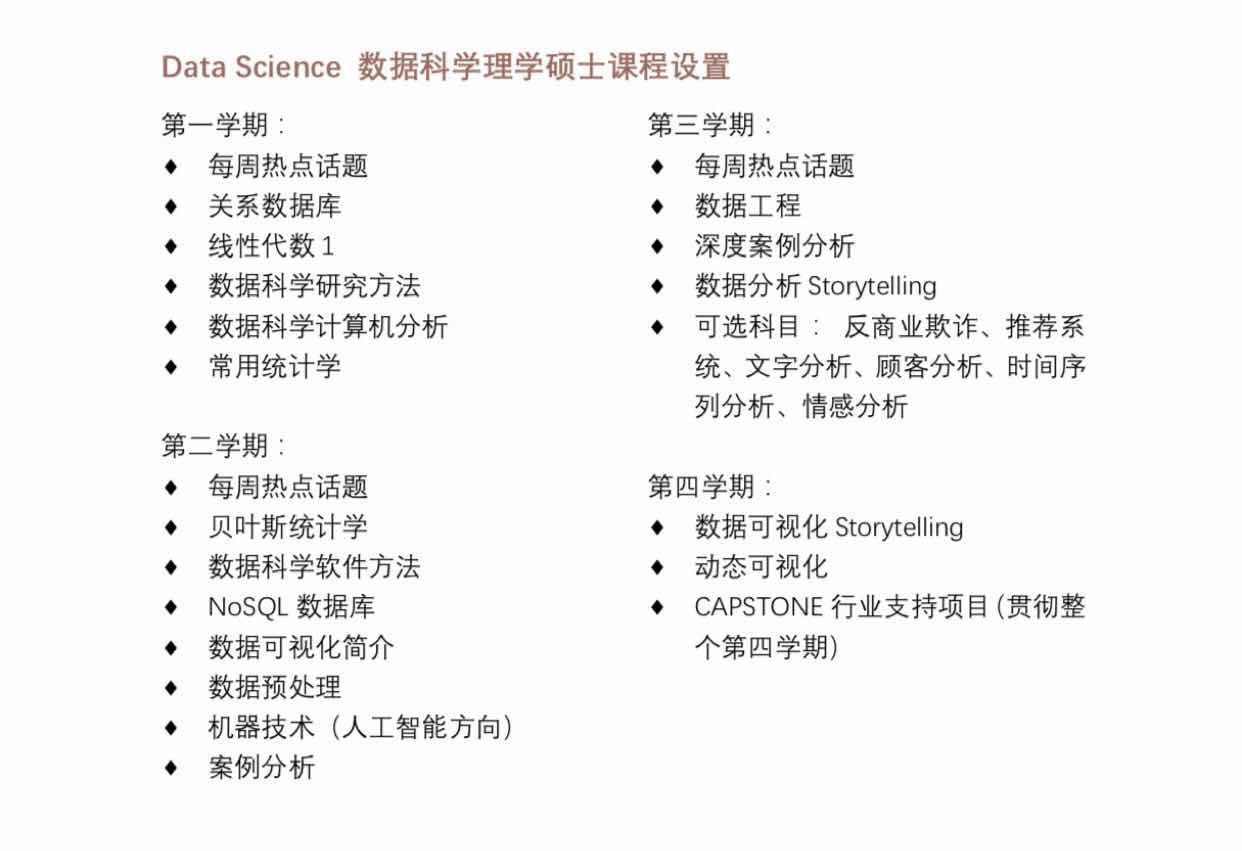 下面是数据科学专业的课程设置: