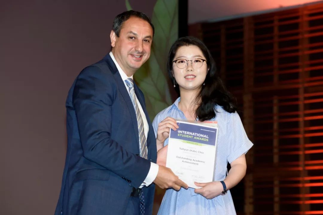 (Suhyun Kate Choi, 来自Asquith Girls女中的2018年学术成就奖提名人,与教育部副部长Murat Dizar合影)