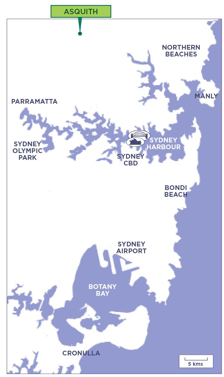 阿斯奎斯女子中学 (Asquith Girls High School) 位于距悉尼市中心西北25公里处上北岸的洪寺比(Hornsby)。Hornsby是悉尼北区较大的商业中心,且周围环绕着美丽的自然丛林,它北面是广阔而美丽的Ku-ring-gai国家公园。