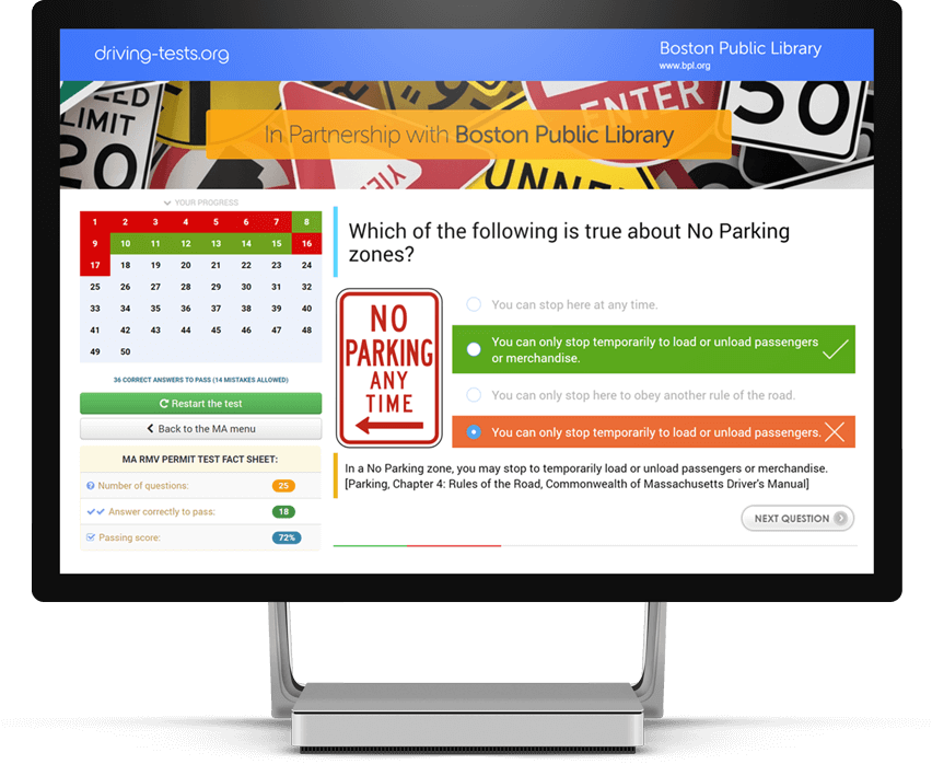 视力测试结束以后,工作人员会马上安排学生进行笔试(机考或手写)。题目非常简单,一些州甚至有国语版。 笔试通过后,即可马上领取一张临时练习驾照(instructor's permit),通常有效期为一年,拿着这张驾照就可以上大路练习开车了,高速,国道,市区路都可以。但是通常会要求身边有一位21岁以上的有持有正式驾照的陪同人。