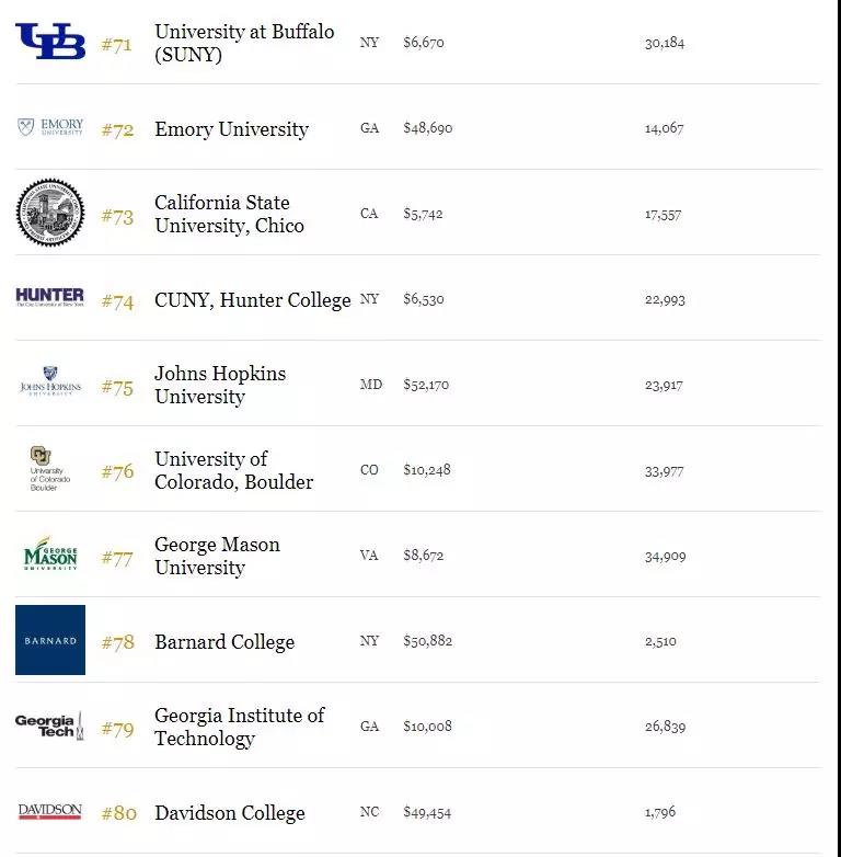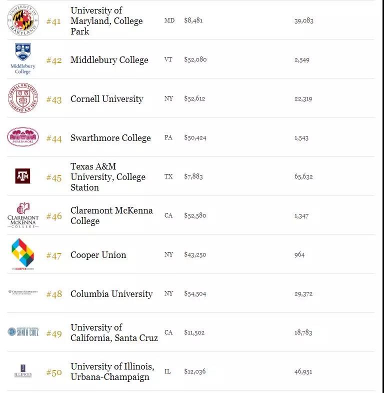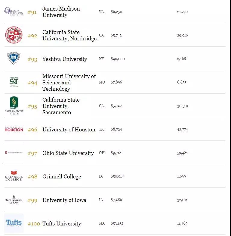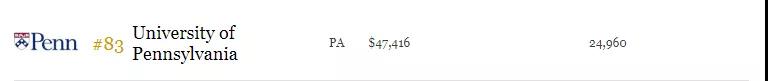 净价 : 学费和食宿价格减去学生获得的助学金、奖学金和教育税等优惠。 (对于公立学校,排名采取的数据为州内学费。 )