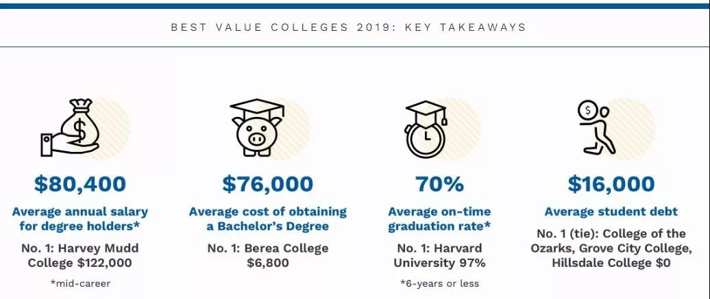 为了更好地服务学生,为了让更多的家庭在这次重大投资中获得良好的回报,在5月1日大学签约日——大多数大学生接受录取的截止日期到来之前,福布斯公布了2019年最具价值的美国大学排名。 参与排名的645所学校均为四年制学位的公立和私立大学,不包括私立盈利性学校。