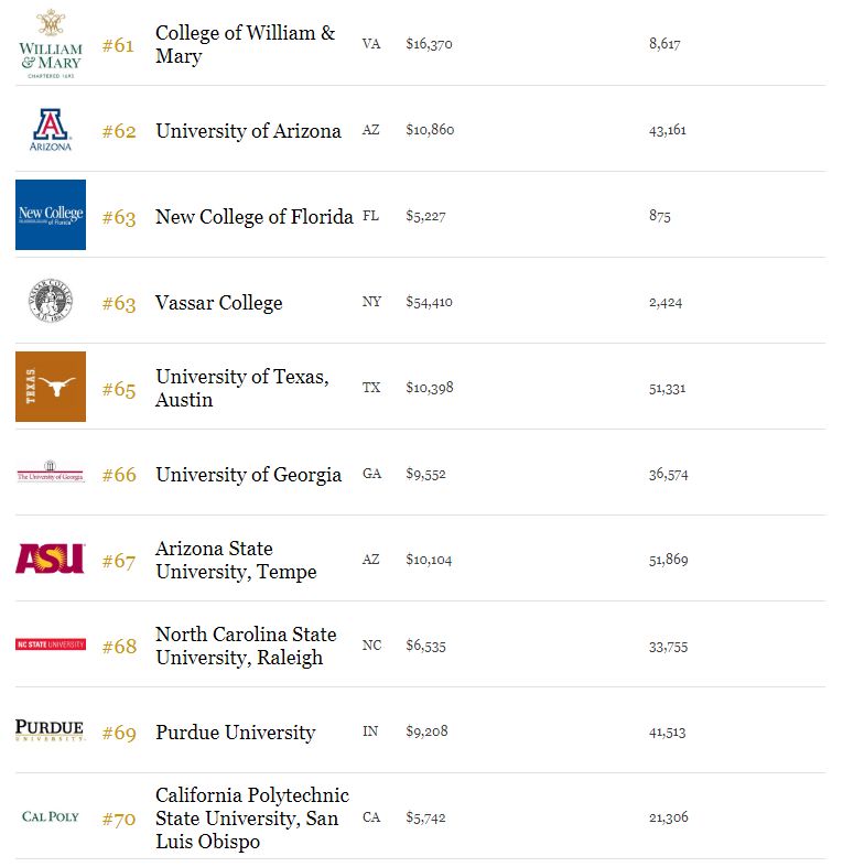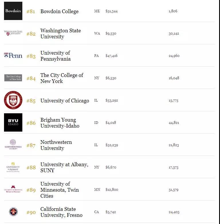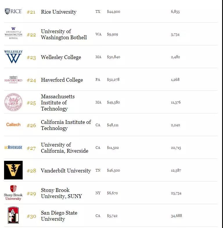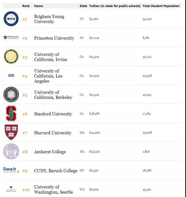 以下是Top100的最具价值美国大学排名,你的梦校在哪儿呢?