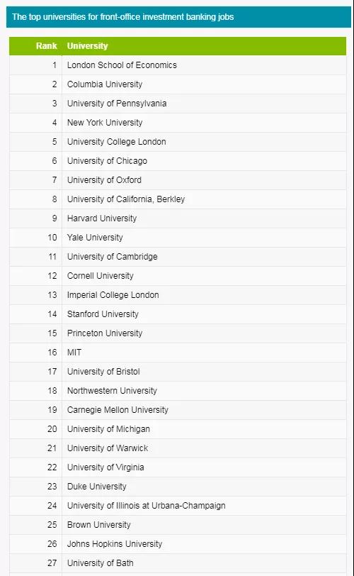 而且,大学的综合排名并不等于求职排名,有些学校综合排名200多名,却是投行实打实的Target School。