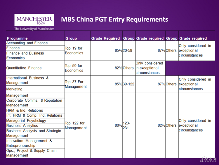 最后,说说曼大环发学院的录取标准: