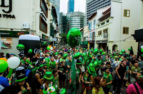 戴绿帽子、绿围巾、穿绿衣服、绿发饰、一身绿,总之每年超过十万的游客都会在这里过一把绿色的瘾!但更恐怖的是美国芝加哥,人家把整条河流都染成绿色的!