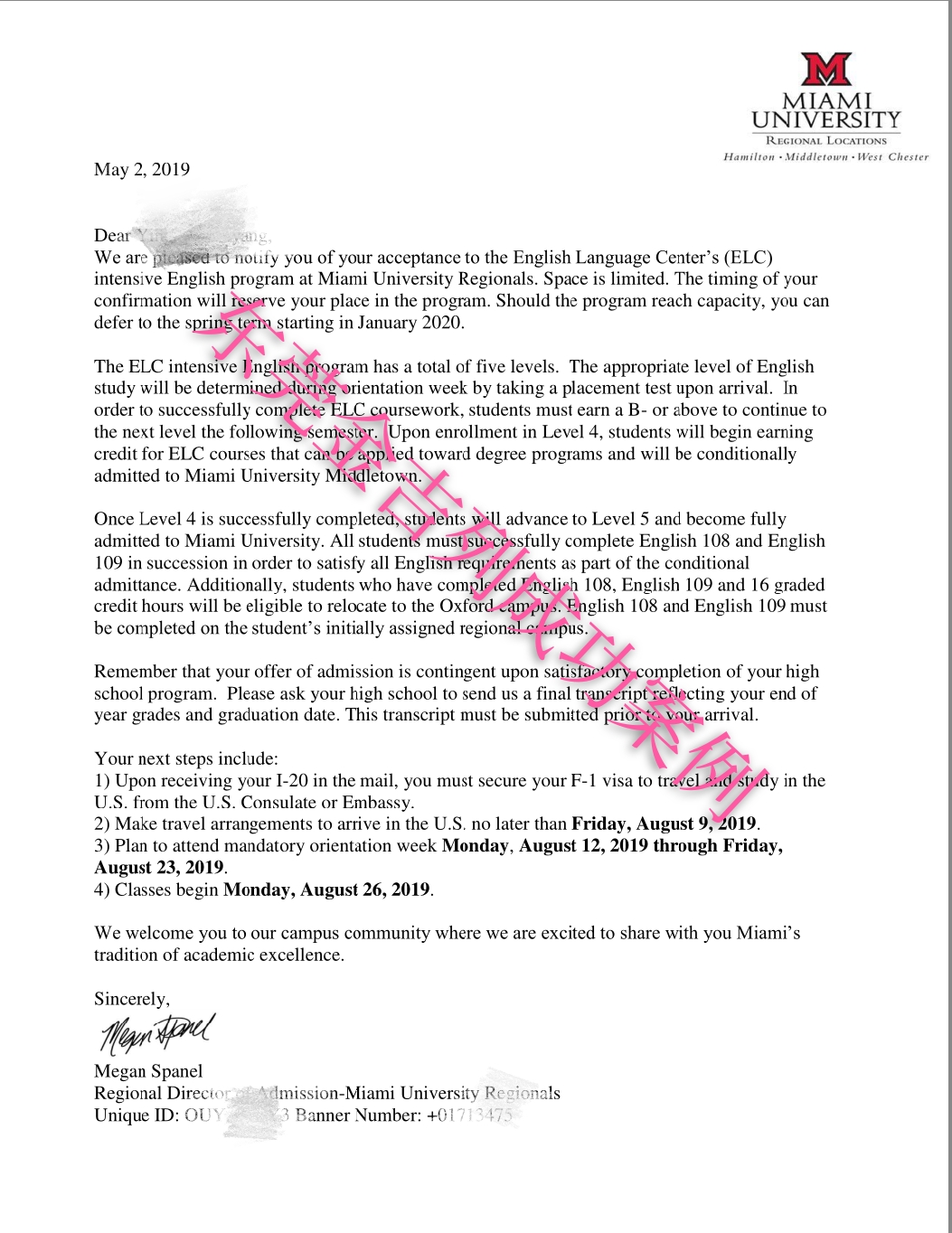 以上,为东莞东华高三学生(非国际班)的欧阳学生,在妈妈和金吉列美国部的努力下获得的录取之一。除了和学生确认申请专业外,基本都是和家长沟通确认申请资料及文书等问题。2019年4月30递交申请,2019年5月2日下录取信。