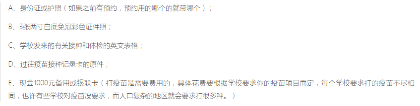 A: 虽然学校给的疫苗表里有那么长一大串的疫苗,不过不用担心,大部分你都打过哦。所以去医院的时候,一定要带上你之前的疫苗接种卡以及学校给的疫苗表格,这样医生就能够知道你要打哪些疫苗、具体打几针啦~
