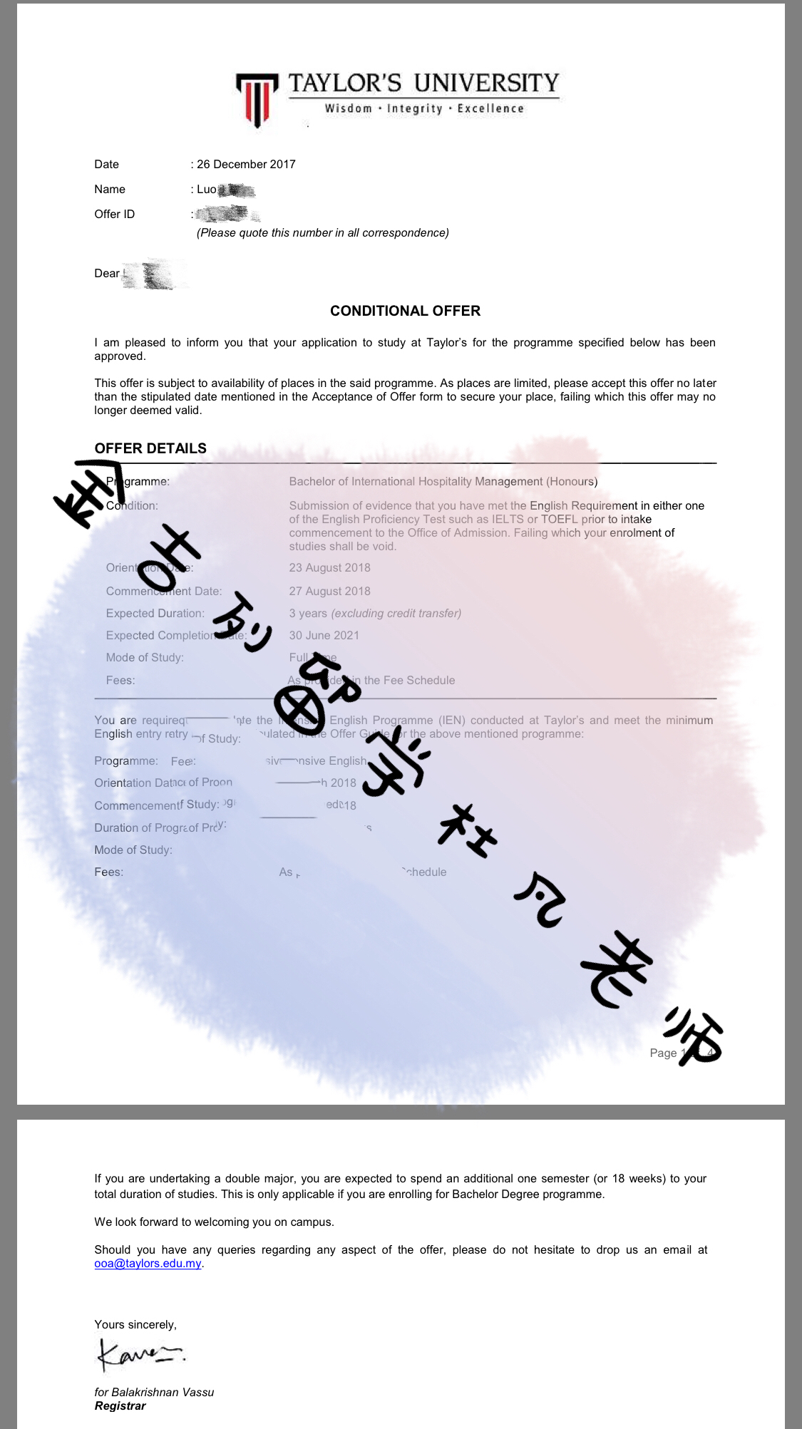 因此,在详细了解了马来西亚这一政策之后,罗同学和家人欣然接受并落实方案申请以酒店管理享誉亚洲的马来西亚泰莱大学。